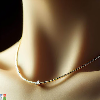 egy lenyűgöző, részletgazdag, nagy felbontású közeli felvétel egy gyémánt nyakláncról egy hölgy dekoltázsán. A hangsúly az ékszereken van.